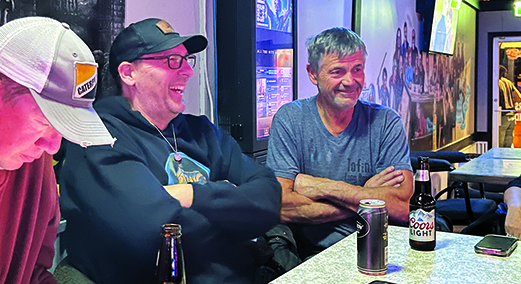 Southern Alberta Newspapers Photo by Zoe Mason. RESULTS IN: Redcliff’s unofficial mayor elect Chris Czember, left, sits next to former mayor Dwight Kilpatrick, right, at an election night gathering with other candidates held at Czember’s Redcliff bar Who’s on 3rd.By Zoe Mason